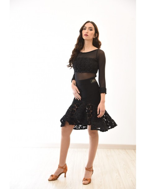 Mettiti in mostra alla pratica latina in questa gonna da ballo, che mostra perfettamente le tue curve femminili. Dettagli increspati sul retro e l'orlo svasato con dettagli floreali ricamati eleva istantaneamente questo articolo con dettagli senza sforzo.